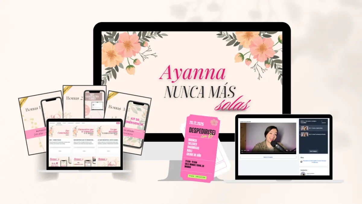 Ayanna da acceso inmediato a todos los materiales (clases, audios, recursos y comunidad) desde el primer momento,